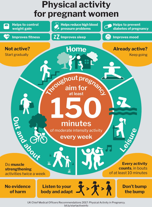 Mottola MF, Davenport MH, Ruchat SM, Davies GA, Poitras VJ, Gray CE, Garcia AJ, Barrowman N, Adamo KB, Duggan M, Barakat R. 2019 Canadian guideline for physical activity throughout pregnancy. Br J Sports Med. 2018 Nov 1;52(21):1339-46.